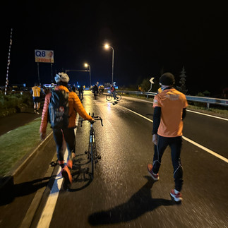 T1 – Do prvního depa stoupá červený koberec od řeky. V průběhu klusu mi Ruda stíhá rozepnout neopren a sundat jej z ramen. Já pracuji na rukavicích. Při vběhu do stanu jsem předán do rukou Karči, která již vše vyskládala na zem. Jsme zde brzy, takže máme hromadu místa, ale za dalších 20 minut zde bude slušně rušno. Sundávám neopren a kompletně se svlékám donaha. Karča ze mě strhává neoprenové ponožky. Suším celé tělo do hřejivého ručníku a rychle začíná proces oblékání. Začínáme čepicí na hlavu a jde se dolů. Ponožky, zateplené návleky na nohy, cyklistické kalhoty, cyklodres krátký, cyklodres dlouhý, bunda, péřová vesta, tretry, pogumované návleky na boty, helma a na úplný závěr vyhřívané zimní rukavice ohulené na maximum. Cestou do sebe ještě hážu jeden teplý čaj od organizátorů a pryč. Když doběhnu ke svému kolu, tak zde již čeká Ruda, který mi zapnul blikačky. Vyndává kolo ze stojanu a já ho plynule přebírám. Proběhnu depem a na silnici s dámskou rozvahou nasedám na kolo. Jsme průběžně druzí. V depu jsem strávil 5:05 minut a zaznamenávám šestý nejrychlejší čas prvního depa. Nicméně na rozdíl od rychlíků jsem komplet suchý a převlečený. Nejrychlejší v depu byl Patrik a na něj jsem ztratil další 1:28minuty. Pro zajímavost si můžeš tipnout, jaká byla nejdelší doba závodníka strávená v prvním depu??? Držitelem letošního ročníku byl švédský závodník Andreas Gustavsson časem 36:20 min. To už musel stihnout královskou snídani se šlofíkem…