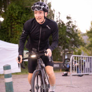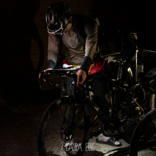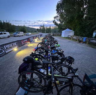 T1: Zdolám pár schodů od vody a hned se ke mně připojuje Karča, která mě jako školáka chytne v podpaží a táhne do převlékacího stanu. Většina závodníků jej nevyužila a měli vše přichystané hned u svého kola. Já tento závod beru jako přípravu na Icon, kde bude výrazně větší zima a chci vyzkoušet oblečení, které plánuji mít tam. Proto se chci kompletně převléci do suchého. Upřednostním pohodlí oproti časové úspoře a promrznutí. Ve stanu ze sebe vše rychlostí vojáka na opušťáku sundávám a začíná pomalejší část - oblékání. Karča mi postupně pomáhá s cyklo kraťasy, krátkým dresem, ponožkami, tretrami, bundou a cyklo čapkou pod helmu. Připravené dlouhé rukavice vynechávám, protože mi je teplo. Cvakavým klusem se přemístím se svému kolu. Helma, číslo, zapnout přední/zadní blikačku a tachometr. Support team ujišťuji, že jsem v pohodě a nic extra zatím nepotřebuji. Jedeme i dál dle dopředu domluveného plánu. Jsem ready na nejdelší část dnešního putování. Když vyháknu kolo ze stojanu, tak se v depu objevuje další závodník. S potleskem naskakuji (vlažně přendávám nohu přes horní rámovou trubku a rozvážně zacvakávám pravou tretru) na kolo. Adiós! Můj support team sklízí všechno moje oblečení a postupně naskakují i oni do auta.