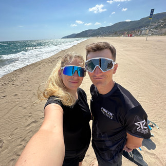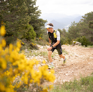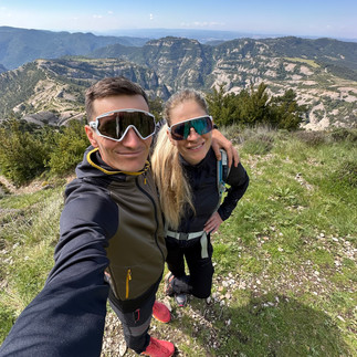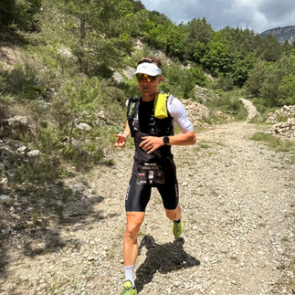Postupně do sebe soukám první tortillu a relativně si pochutnávám, i když trávení do kopce je pozvolnější. Od teď budu držet rytmus co 30 minut, to přesnídávka nebo tortilla. Přes nižší okolní teplotu okolo 13 °C mám relativně velkou žízeň, a tak dost piji. S týmem máme domluvenou taktiku, že mě vždy předjedou, a když to půjde, tak zastaví. Při předjetí řeknu, co potřebuji a oni přichystají. Takto si postupně beru cyklo rukavice, přesnídávku a nový bidon s ionťákem. První stoupání začíná po 20 km a musím zdolat nějakých 700 výškových metrů (Coll de Comiols 1 102 m.n.m.). Jede se mi dobře, tepy jsou stále vyšší, ale první kopec chci vyjet tempově, potom se uvidí. I když jsem se plánoval svléci, tak v bundě mi je komfortně a po celou dobu stoupání si nechávám dlouhý rukáv. Nahoře je meta 42 km a tím, že je již těsně po 8:00, tak mohu odhodit přední blikačku. Prosím Jiříka s Majdou ať počkají a změří reálný čas na pronásledovatele. Nechci bláhově věřit informacím z live trackingu a být nemile zaskočen neznámým pronásledovatelem. Přichází téměř 20km sjezd, kde si nohy odpočinou a konečně mi spadnou tepy. V průběhu sjezdu dostávám SMS, která se mi propíše na Garmin, že můj náskok je již 11 minut na Rusa Pavla se startovním číslem 3. To mě dost uklidnilo a mám v plánu zvolnit. Náskok mám dostatečný a nyní se nesmím zbláznit. Kopce chci jezdit meziprahově (okolo 300 w) a po rovině se pohybovat okolo AEP (cca 250 w). Začíná druhé cca 12km stoupání z 635 m.n.m na Coll de Faidella 1 231 m.n.m. Na samotném úpatí zahazuji bundu a jedu premiérově krátké-krátké. Pravidelně piju, jím, komtroluji tempo a konečně se dostávám do pro mě autem neprojeté krajiny. Jsem první, pln síly a vše mám zatím pod kontrolou. Uvidíme, jak dlouho mi to vydrží… Druhé stoupání zdolám s prakticky suchým dresem a příjemně oroseným čelem. Kraťoučký sjezd, a ještě vyjedu asi 3km brdek na Coll de Coixols 1 332 m.n.m. Na vrcholu je celkem 88 km s následným přechodem do cca 20km sjezdu. Nahoře poprvé zastavuji, beru si bundu, jídlo do kapes a dostávám pusu od Karči. Sjezd jedu na jistotu, protože předjezdec Jirka v autě mi píše, že zatáčky jsou občas zákeřně vysypány pískem. Dole jsou nohy ve freši a jdu do třetího stoupání. Opět nějakých 12 km a 700 výškových metrů (vrchol je Coll de Boix 1 261 m.n.m.). Začíná se oteplovat, tortilly mi už přestávají chutnat, ale sunu to do sebe jak šišky do husy. Nyní se musím energeticky předzásobit před během. Watty i tepy mi začínají pomalu padat, ale reálně změřený náskok na minulém kopci byl přes 14 minut na stále druhého Pavla. Musím vydržet! Třetí kopec je asi ze všech nejhezčí. Jedeme po užších nefrekventovaných cestách vysekaných do skal s výhledy do nížiny pod námi. Občas se před sluníčkem schováme do krátkých tunelů a projíždíme kamenné vylidněné vesničky. Stoupání má okolo 4-5 %, takže pro mě příjemná šmrdlačka o lehčích převodech a vyšší kadenci. Místy mi to připomíná legendární kopec Sa Calobra na Malorce a já se dokonce začínám kochat. Support funguje perfektně a kilometry naskakují. Nahoře na kopci jsem tak rychle, že je načapu nepřipravené. Jirka v houští, Majda se opaluje a Karča něco hrabe v kufru. Cíl se pomalu blíží, už jsme na 135.km. Poprvé si odskočím na malou, vezmu bundu před posledním 15km sjezdem, tortillu měním za banán a začínám klesat. Dole mi pípne garmin poslední stoupání o délce 26 km a 1 200 m. Rychle to propočítám a matematicky to musí být pohoda. Opět se pojede 4-5% kopec a v nich jsem dnes silný. Navíc dostávám aktualizaci mého náskoku, který je stále okolo 14 minut. Zpomaluji, ale klukům to evidentně taky nechutná. Naposledy odhazuji bundu a začínám se opírat do pedálů. Prosím Majdu o preventivní ibalgin, ale v jejím menu je jenom paralen nebo aulin. To tady ještě nebylo. Výborně, dej mi aulin 😊. A pak to přišlo. ZRADA NEJVĚTŠÍ! Hned za úvodem stoupání najíždím do prudkých stěn, které mají mezi 15-18 %. Jedeme cca 200 m stěnu a následuje 100m sjezd o stejném sklonu. A to se opakuji znovu a znovu a znovu. Když vyjíždím asi osmou stojku, tak začínám volit variantu výjezdu zig-zag a v duchu nadávám všem na světě. Přední kolo se mi i místy začíná odlepovat od země. Hopsám sebou jak kovboj na divoké krávě a nevidím konce. Kilometry nenaskakují, nohy začínají vypovídat funkci a kopce jsou snad čím dál strmější. První fyzická i mentální krize je tu. Nyní již mohu říci, že toto bylo nejhorších 8 km z celého závodu. Absolutně jsem s tím nepočítal a byl jsem nemile zaskočen. Naštěstí všechno utrpení jednou musí skončit. Silou vůle se vydrápu na poslední kopec v lese a objevím se na otevřené zelené louce. Kraťoučký sjezd na popadnutí dechu a dole na křižovatce potkávám svůj tým v plné sestavě. Dostávám info, že vše požadované mají. Dostávám přesnídávku, vychlazený ionťák a Red Bull. Křídla jsem sice potřeboval dříve, ale ještě nejsme v cíli. Posledních 15 km je stále do kopce, naštěstí jezdivých a já se znovu dostávám do tempa. Pravidlo 3x „NA“ opět pomohlo (nažrat, napít a nasrat se na celý svět). Nejsem žádný skaut a na přírodě si moc neujíždím, ale výhled do krajiny je opravdu epický. Vidím snad 100 km daleko do údolí. Pode mnou se klikatí cesta, kde jsem před chvíli jel a stále držím první pozici. Když vjedu do cílového horského městečka (vesnice, spíš pár baráků) Port del Comte, tak jsem čistě šťastný z konce druhé části a nervózní ze závěrečného běhu. Absolutně netuším, co na to řeknou moje nohy. V 